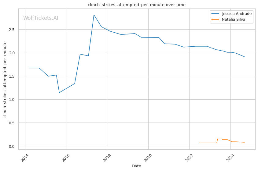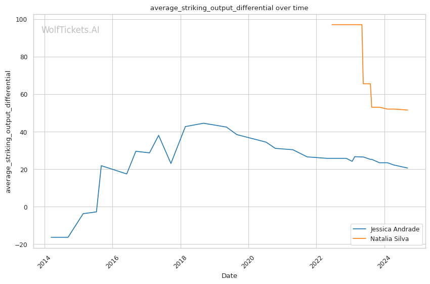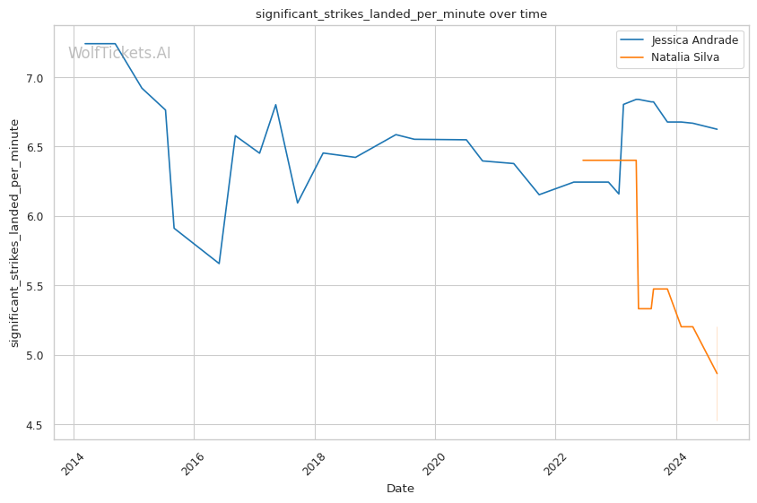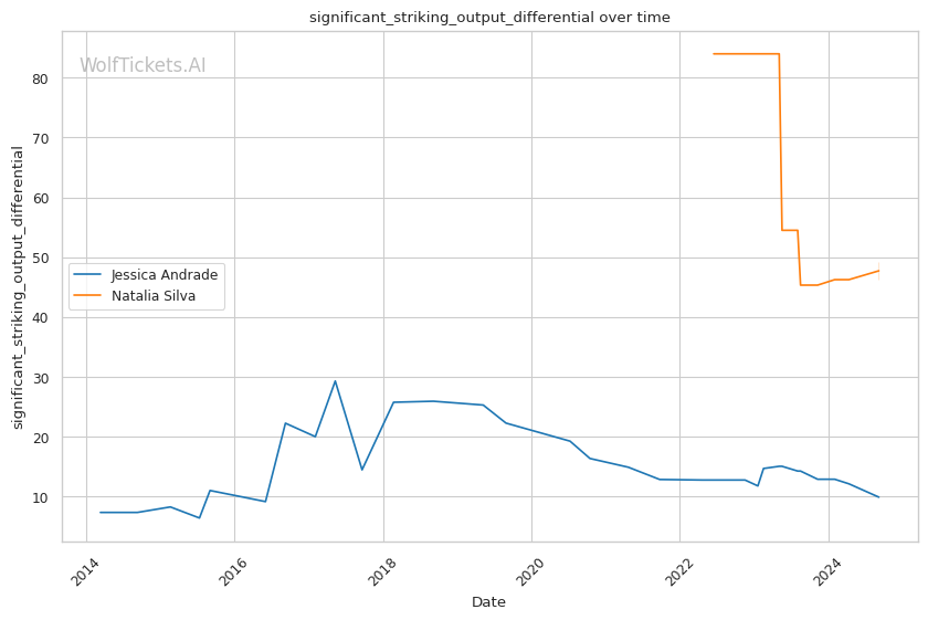 | Stat | Jessica Andrade | Natalia Silva | Weight Class Average | |