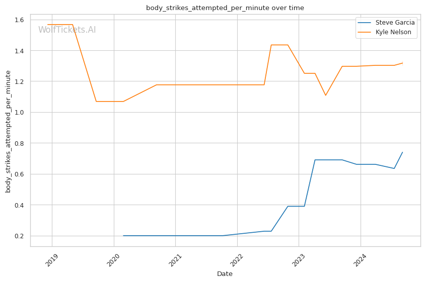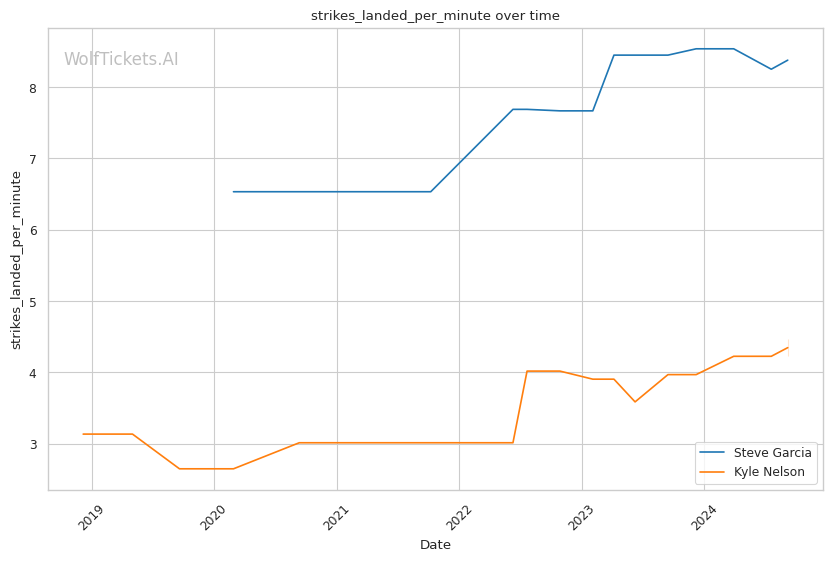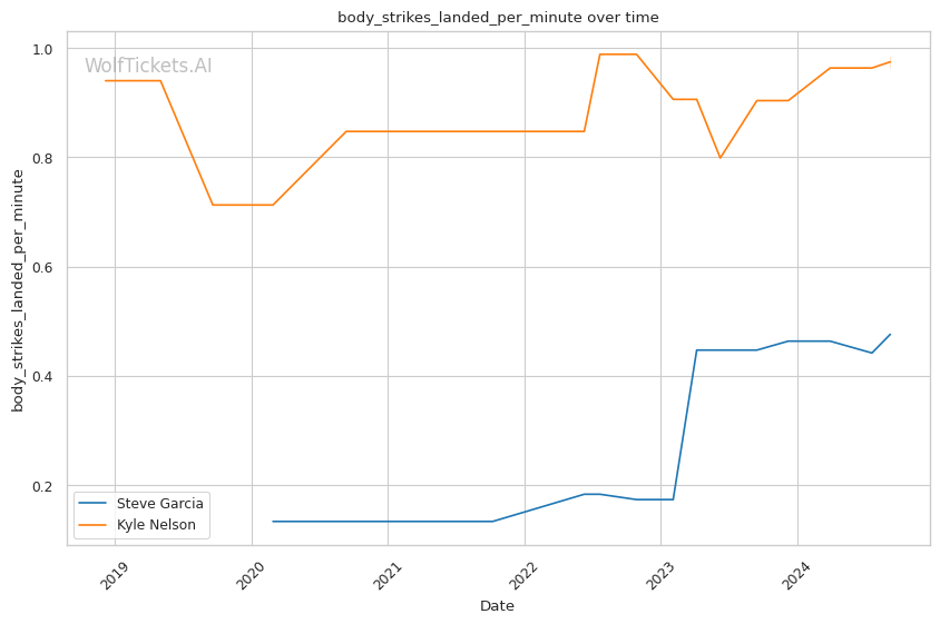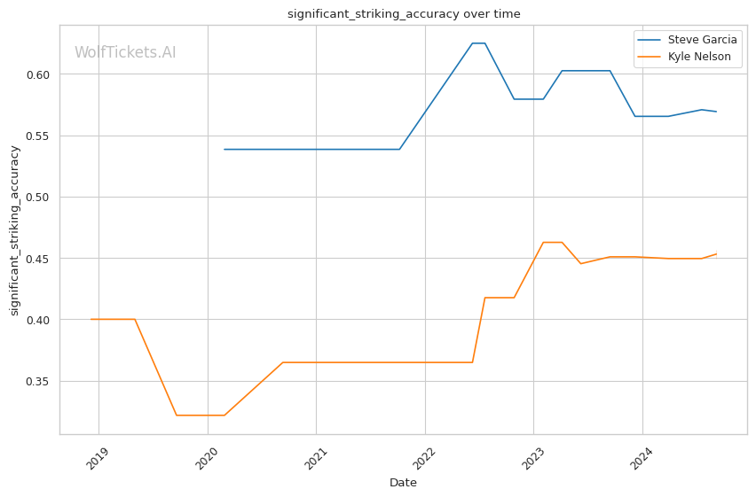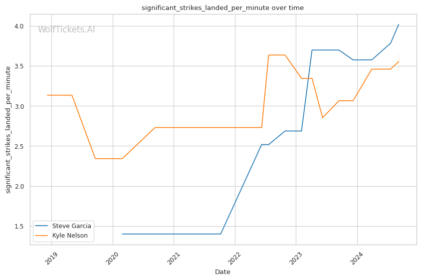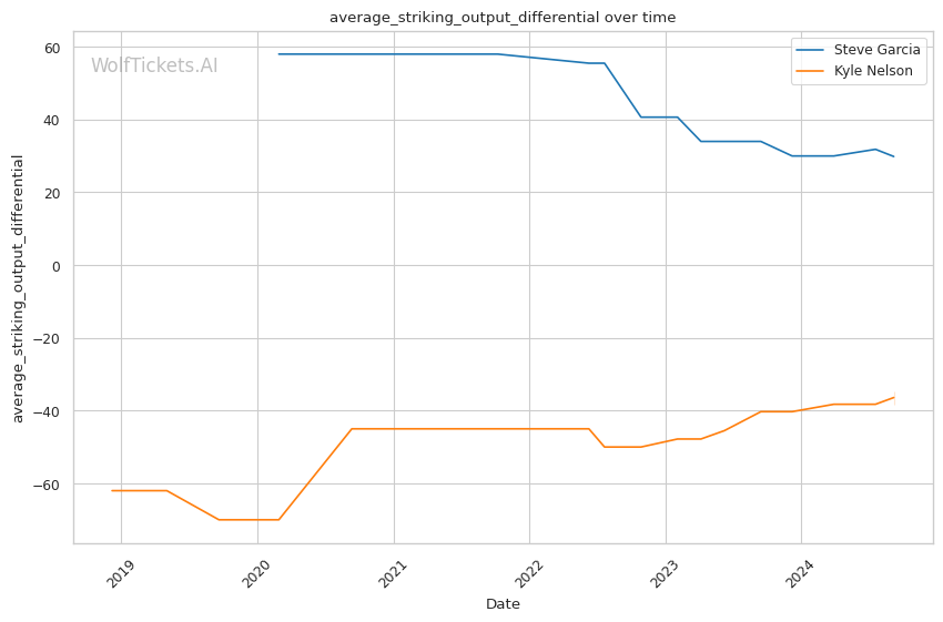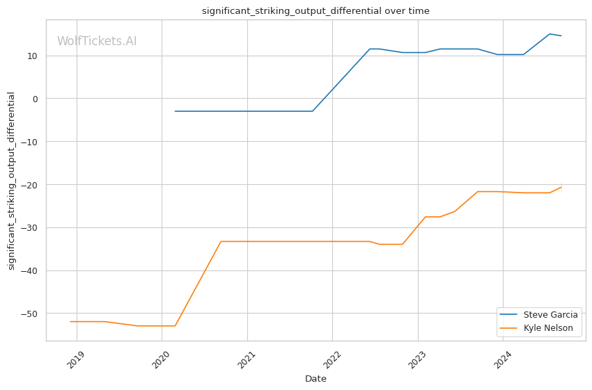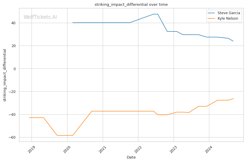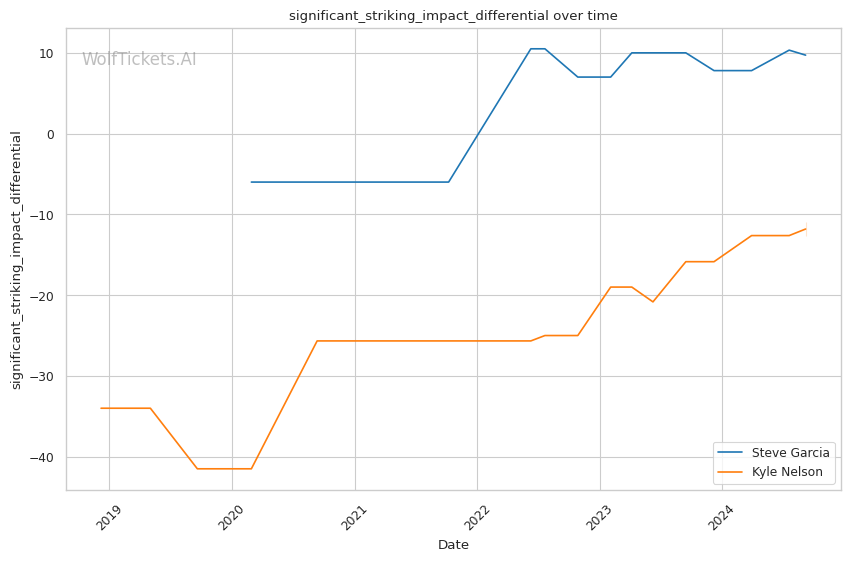 Significant Striking Impact Differential: Garcia's higher value in this metric (9.7143 vs -11.0000 for Nelson) indicates his ability to land impactful strikes while absorbing fewer in return.