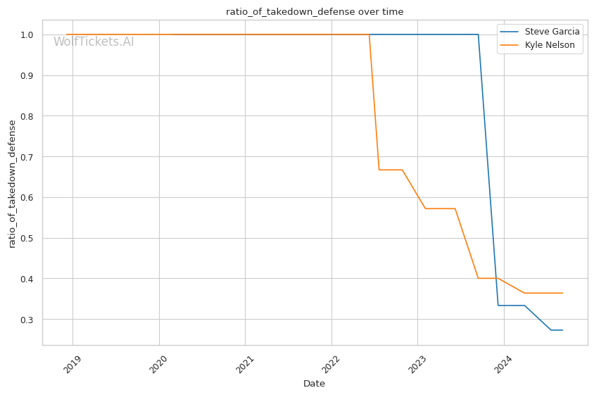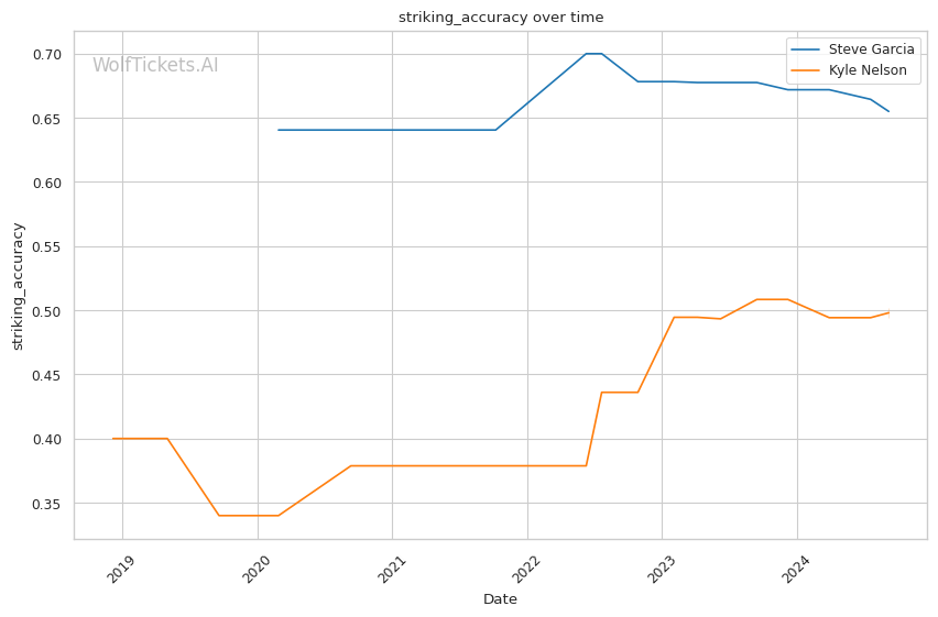 Striking Defense Percentage: Garcia's superior striking defense percentage (45.45% vs 43.79% for Nelson) hints at his ability to avoid incoming strikes more effectively.