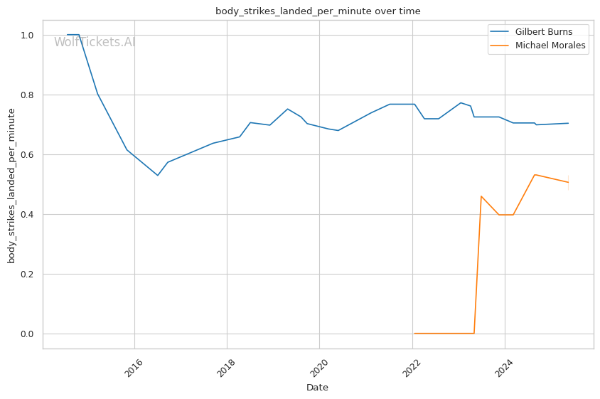 Championship rounds: If the fight reaches rounds four and five, Burns will be at a significant disadvantage. His cardio issues have been consistently problematic in longer fights, as seen against Belal Muhammad where his output dropped dramatically in later rounds. Morales's youth, cardio, and disciplined approach should give him a substantial advantage in the later phases of the fight.