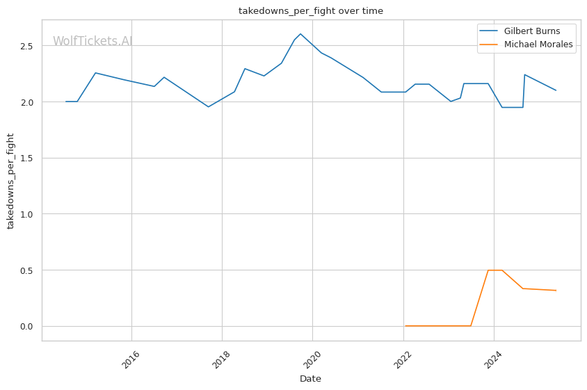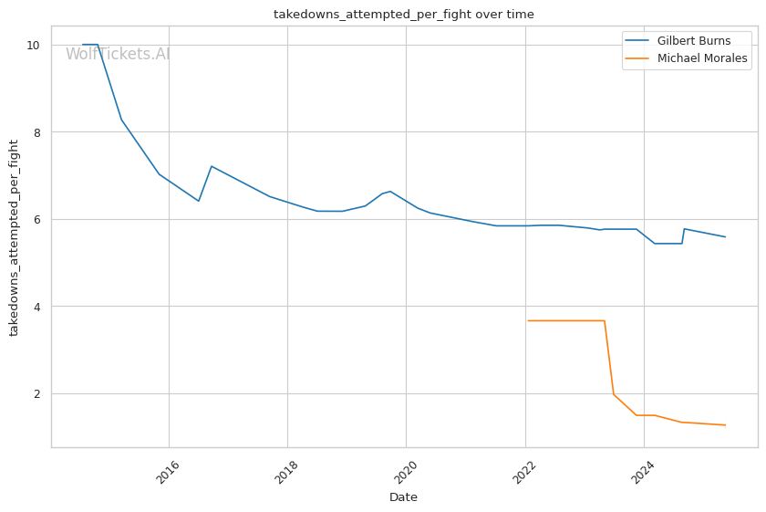 Burns's Takedown Attempts vs. Morales's Defensive Wrestling: Burns will likely attempt to bring this fight to the ground where his BJJ advantage is significant. However, Morales has shown impressive takedown defense, particularly against the fence. Against Magny, Morales's "backpack lock" defense effectively neutralized takedown attempts. Burns's explosive single-leg takedowns could be neutralized by Morales's length and defensive awareness.