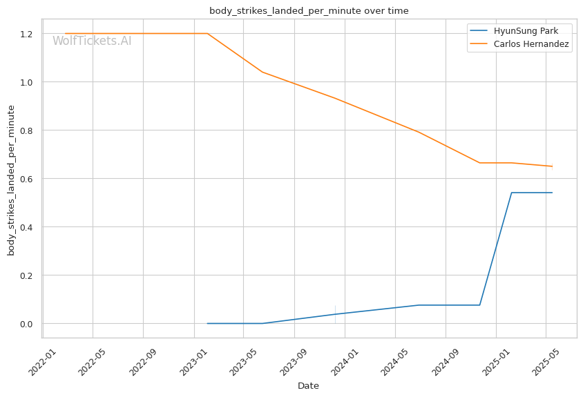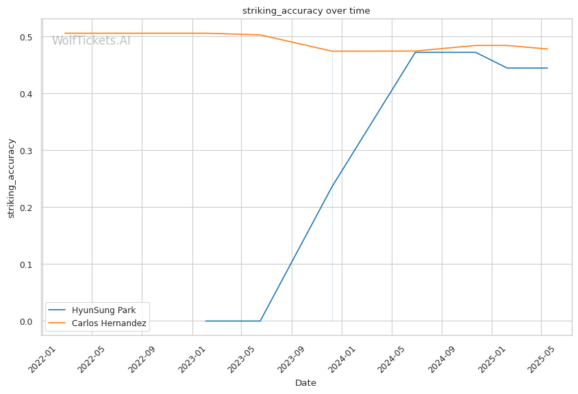 This matchup presents a fascinating clash between Park's counter-striking and Hernandez's pressure boxing. Park's ability to pull and counter should match up favorably against Hernandez's tendency to advance with his head on the centerline.