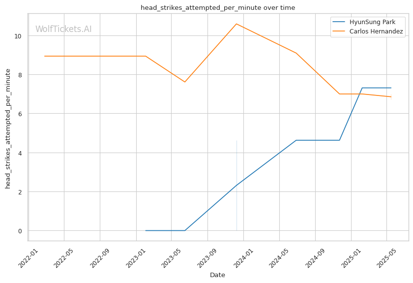 | Head Strikes Attempted per Minute | 7.308 | 6.708 | 5.003 | |