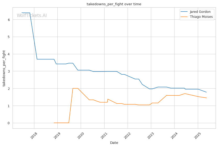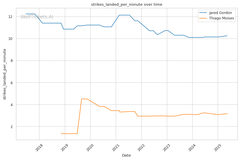 | Stat | Jared Gordon | Thiago Moises | Weight Class Average | |