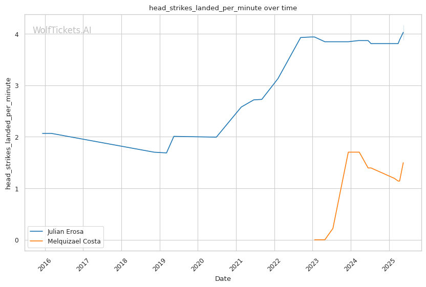 | Head Strikes Landed per Minute | 4.174 | 1.498 | 2.366 | |
