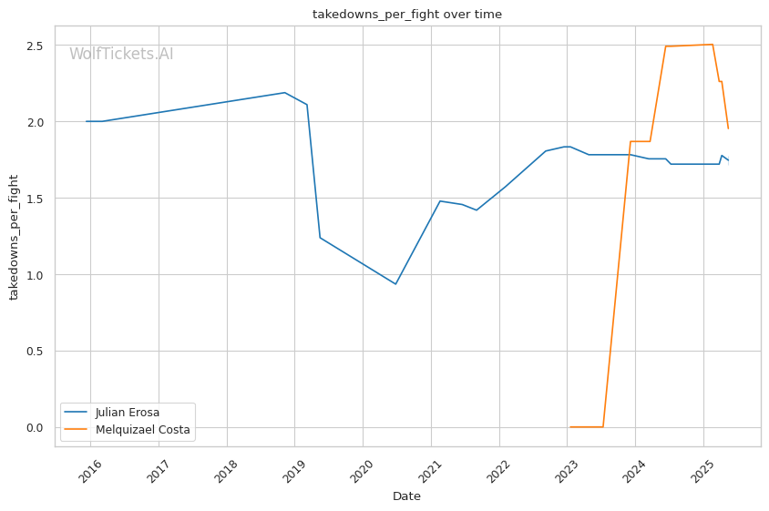 Costa's technical precision, counter-striking ability, and opportunistic submission game match up favorably against Erosa's aggressive but defensively flawed approach. While Erosa's chaotic pressure and volume striking can overwhelm opponents, his defensive vulnerabilities and chin concerns make him susceptible to Costa's clean counter punches and submission threats. Costa's ability to capitalize on Erosa's forward momentum with well-timed counters and guillotine attempts should prove decisive in this matchup. WolfTicketsAI's prediction of a Costa victory is well-founded based on the technical matchup dynamics.