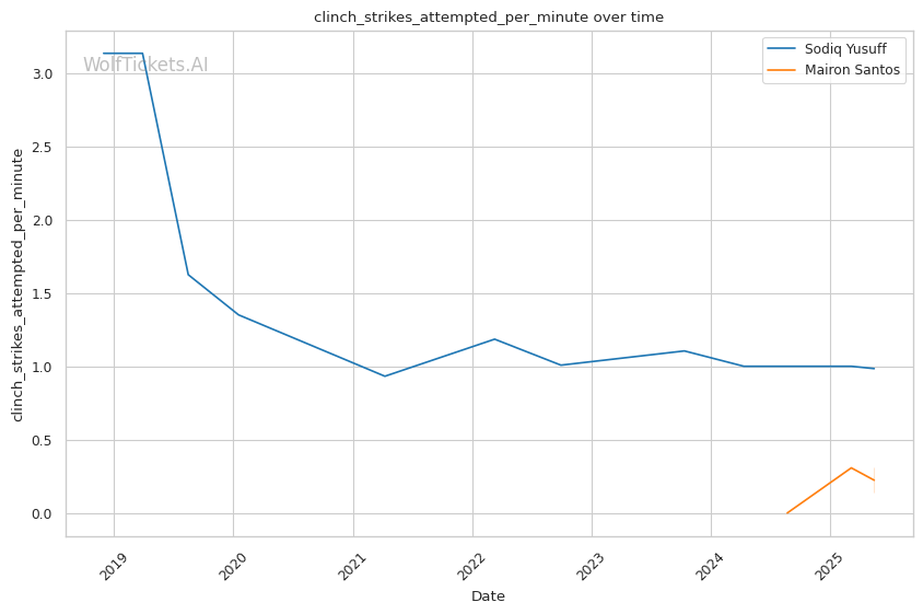 The clinch battle will be crucial. Yusuff demonstrated devastating clinch work against Shainis, but Santos has shown excellent defensive awareness in the clinch, particularly in his ability to create separation and counter with elbows, as seen in the Ofli fight.