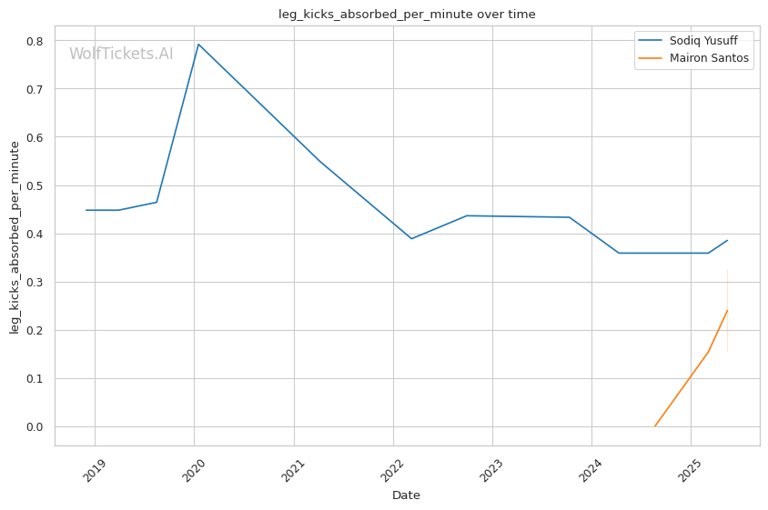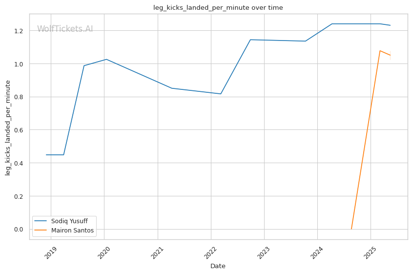 Lead Leg Exposure: Yusuff often posts his lead leg forward when setting up punches, making it vulnerable to calf kicks and cut kicks. In the Lopes fight, his lead leg was repeatedly attacked when advancing, disrupting his balance and power generation. This is particularly concerning against a technical striker like Santos.