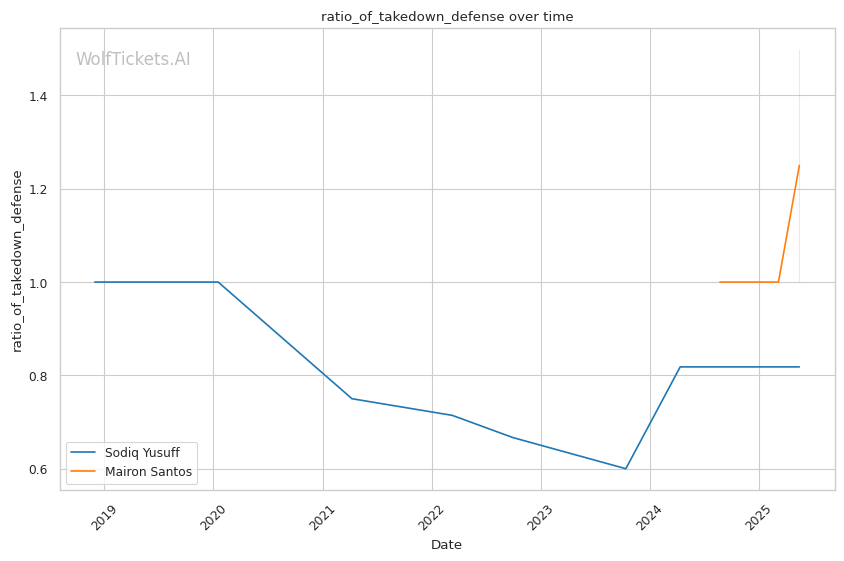Striking Defense: Santos's defensive awareness and counter-striking ability could exploit Yusuff's tendency to overcommit to combinations. Against Lopes, Yusuff's aggressive entries were timed and countered effectively.