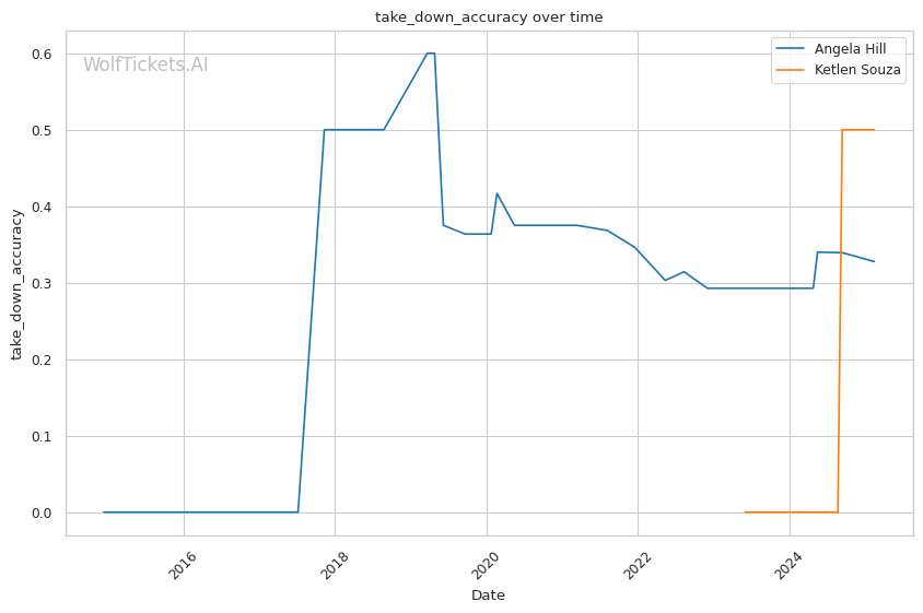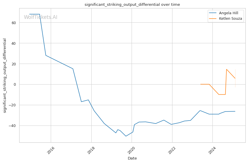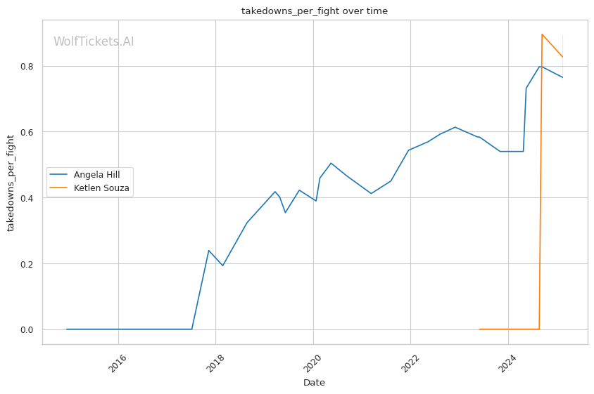Angela Hill's combination of relentless striking and evolving grappling skills will likely overwhelm Ketlen Souza, especially if the fight extends beyond initial exchanges. WolfTicketsAI confidently backs Hill to secure a victory, capitalizing on her higher output and endurance.