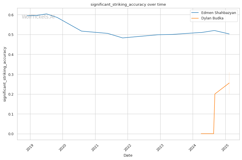 WolfTicketsAI has accurately predicted three of Shahbazyan's recent fights, only misjudging his bout against Meerschaert. For Budka, the model successfully called his loss to Petroski, highlighting its reliability for Budka matchups.