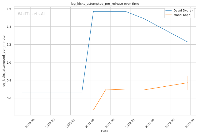 | Leg kicks Attempted per Minute | 1.226 | 0.851 | 0.758 | |