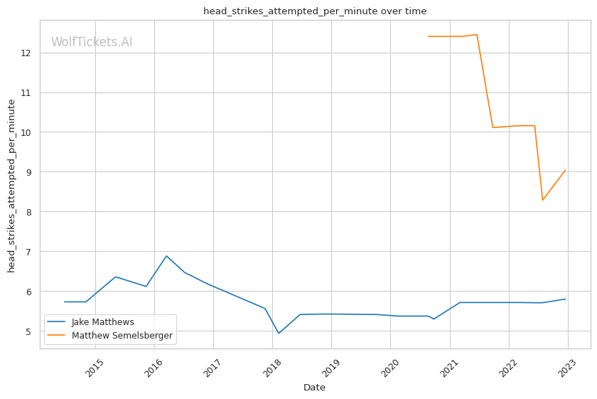 | Head Strikes Attempted per Minute | 5.890 | 9.039 | 7.273 | |