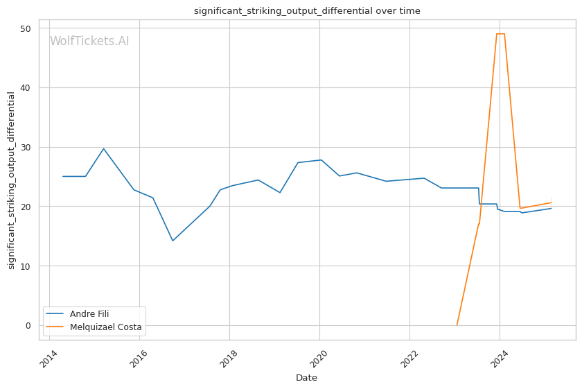 WolfTicketsAI’s accuracy with both fighters is noteworthy. It precisely predicted Fili’s recent victories while missing Costa’s unpredictable outcomes, indicating lesser certainty about Costa's performances in the past.