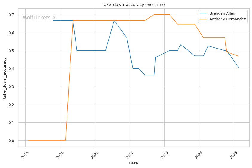 WolfTicketsAI previously nailed predictions of Hernandez overcoming Pereira and Kopylov through relentless groundwork, albeit with a moderate historical score on Allen—it hit the mark with correct calls against high-level grapplers like Paul Craig but misjudged the Muniz bout—a testament both to Allen's capabilities and Hernandez’s underscored consistency.