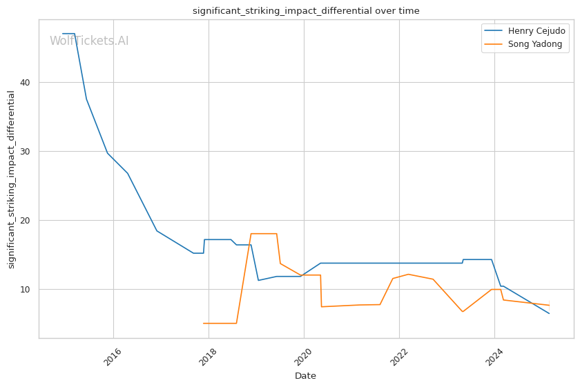 Emerging with a clear momentum and a refined striking arsenal, Song Yadong is tipped to overpower Henry Cejudo in this matchup. WolfTicketsAI’s analysis leans towards Yadong's explosiveness and defensive improvements as decisive factors, reaffirming the predicted winner with confidence.