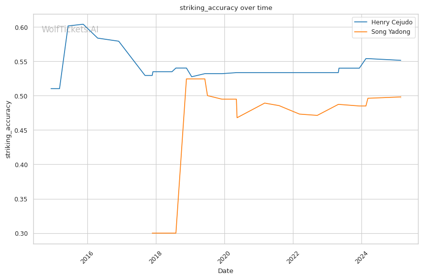 | Significant Striking Accuracy | 46.78% | 43.53% | 41.02% | |