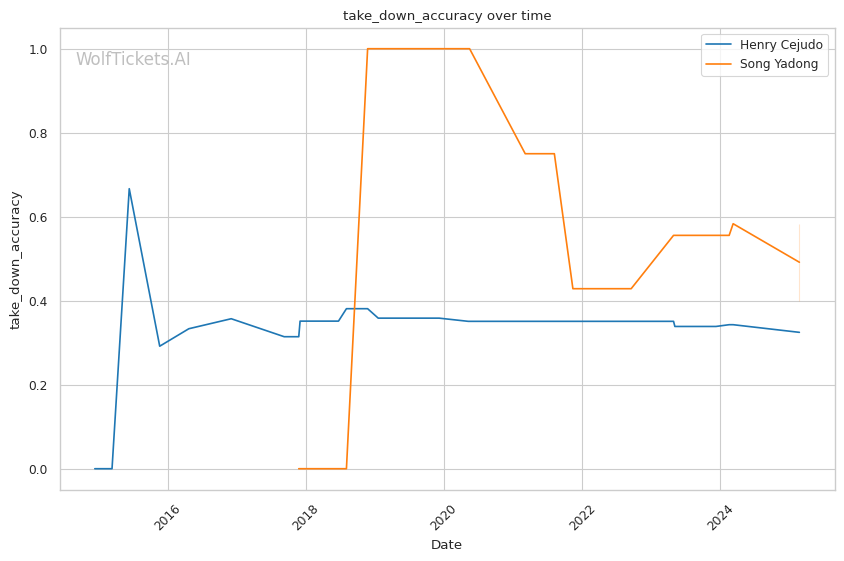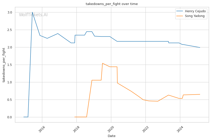 | Stat | Henry Cejudo | Song Yadong | Weight Class Average | |