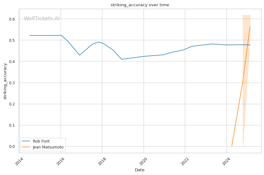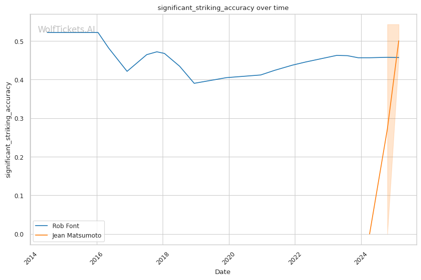 Matsumoto's striking, while not as high-volume as Font's, is efficient, enabling him to maintain control and dictate fight tempo. His adeptness in blending striking and grappling keeps opponents guessing and prevents them from settling into a single rhythm, a tactic he might exploit against Font's primarily jab-centric strategy.