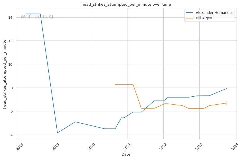| Head Strikes Attempted per Minute | 7.913 | 6.893 | 6.108 | |