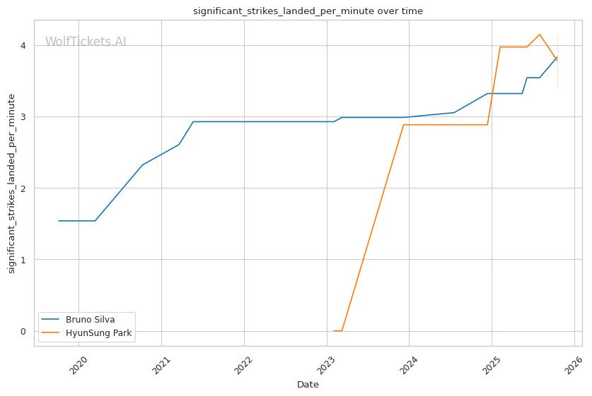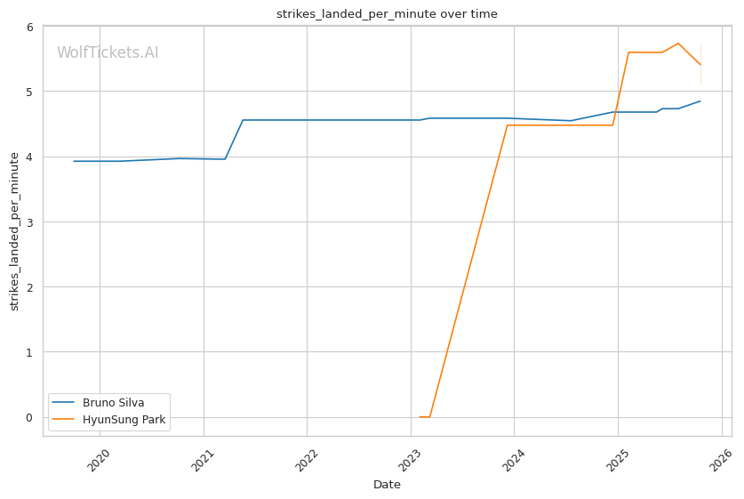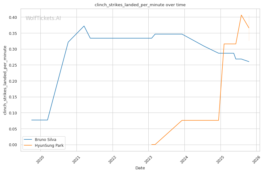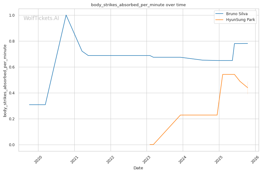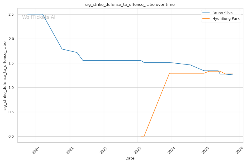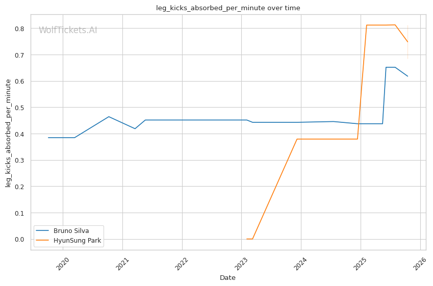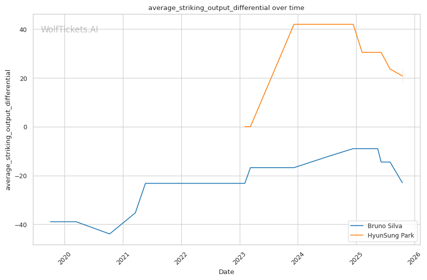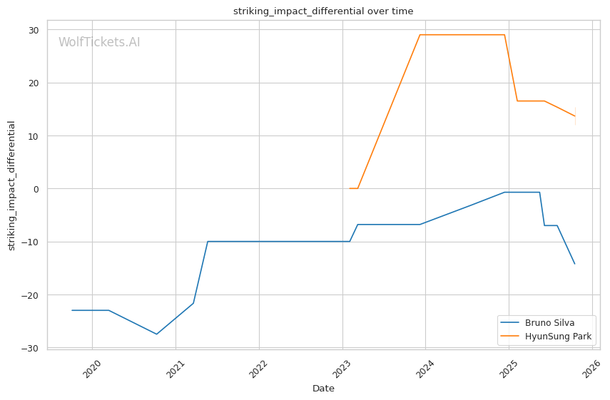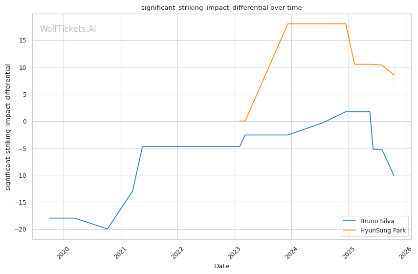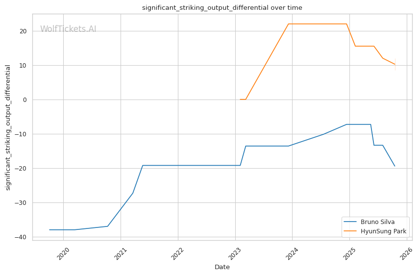 The statistical picture paints Silva as a fighter declining rapidly, absorbing excessive damage while failing to land effectively. Park's superior defensive metrics and positive output differentials indicate a fighter operating at a higher technical level.