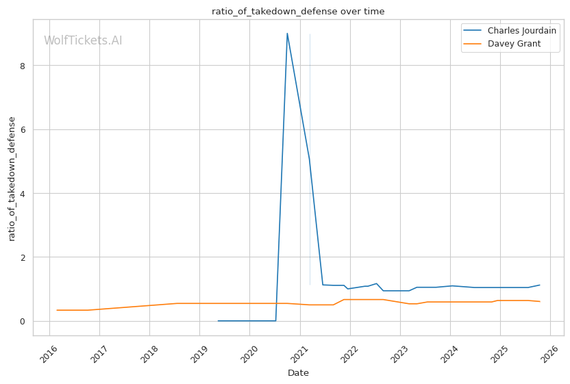 Predictable Patterns: Jourdain's kick-to-takedown sequence is readable. Grant's underhook positioning from body strikes will stuff these attempts.