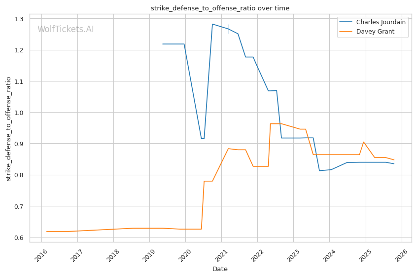 | Striking Defense to Offense Ratio | 83.49% | 84.02% | 89.64% | |