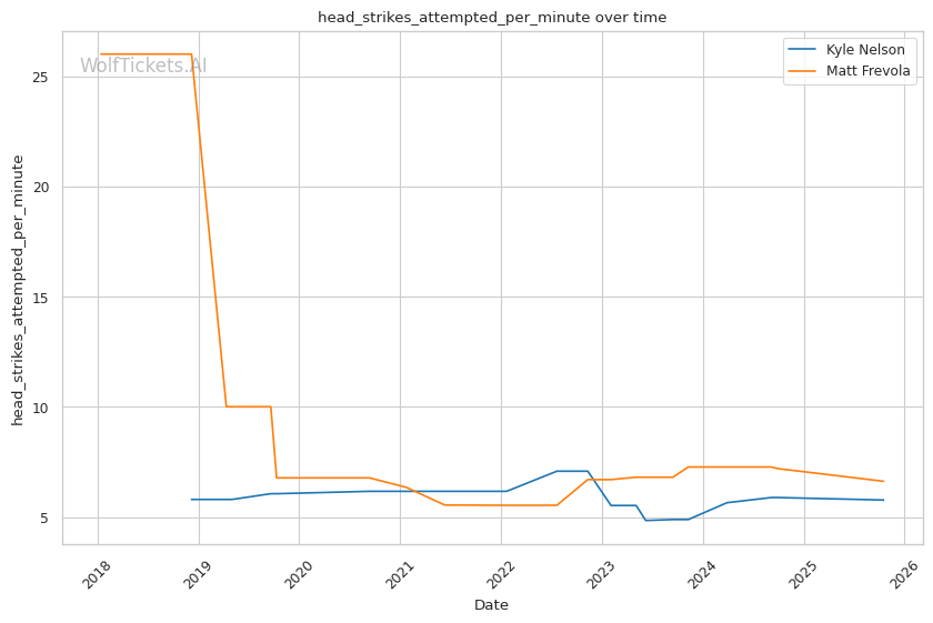 | Head Strikes Attempted per Minute | 5.657 | 6.620 | 6.613 | |
