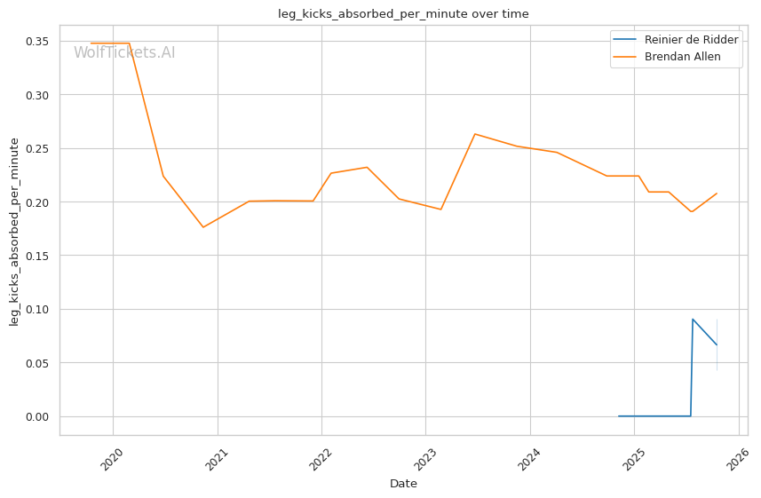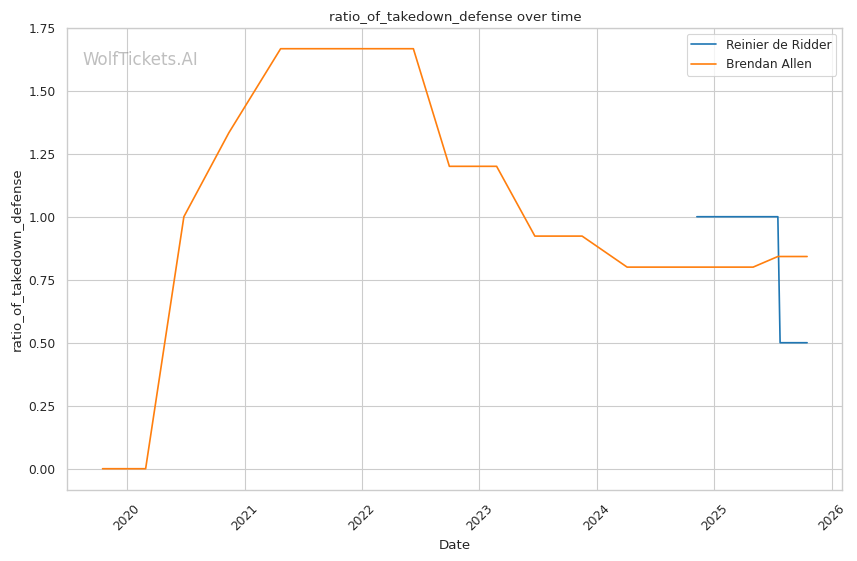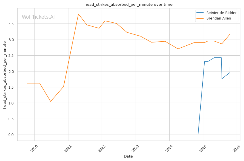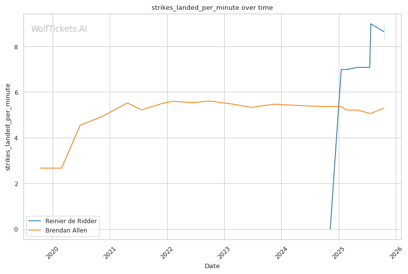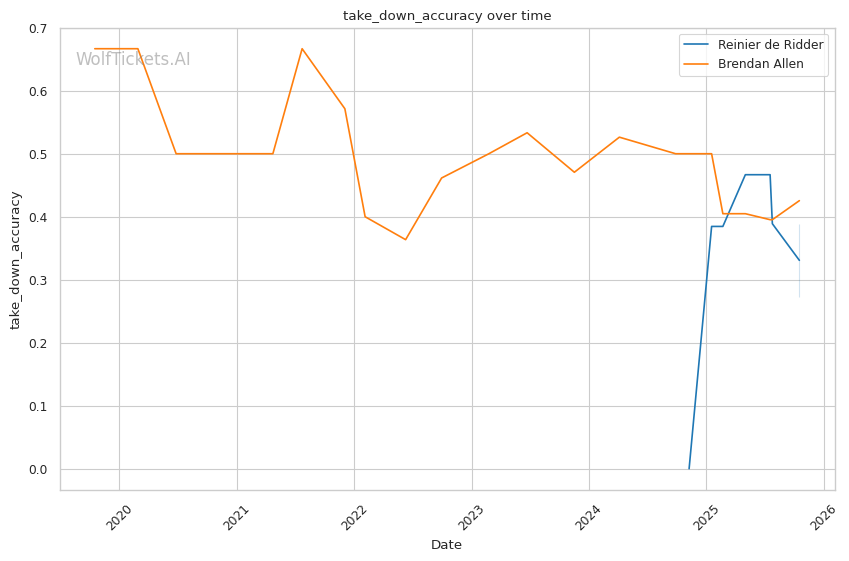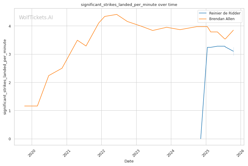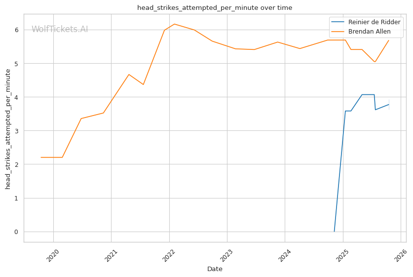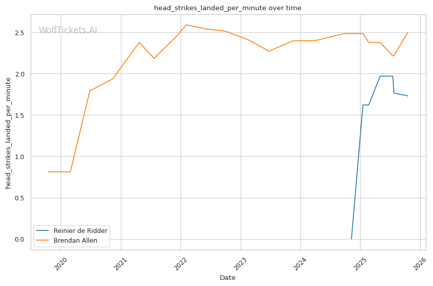 Striking Defense Concerns: Allen's 38% recent striking defense and 43% significant striking defense are alarming against de Ridder's systematic body attack. Allen absorbs 2.75 head strikes and 0.53 body strikes per minute recently—de Ridder's body work will find its target.