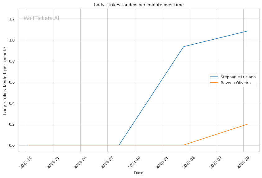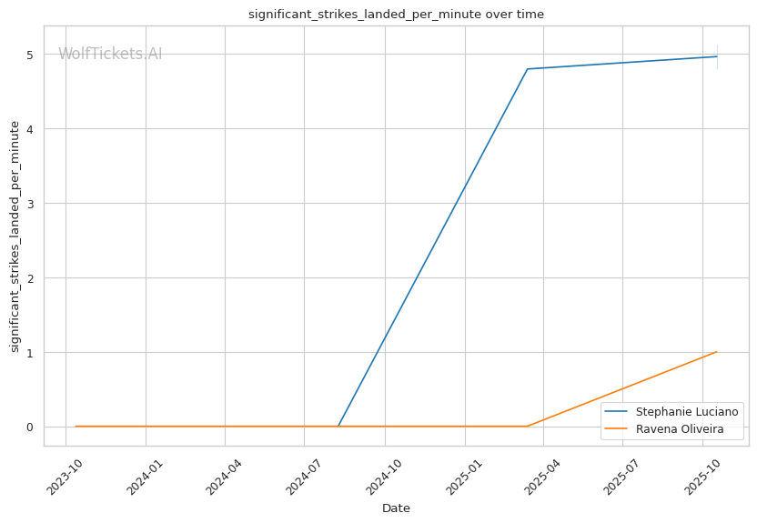 Championship Rounds: Both fighters have shown Round 3 resilience—Luciano stuffed all five Hughes takedowns in the final frame, Oliveira rallied with strikes and scrambles against Lisboa. But Luciano's recent striking efficiency collapse (21% in Round 3 vs Hughes) is concerning. If Oliveira survives to Round 3 without significant damage, her aggressive rallies could steal a round. However, Luciano's superior striking volume (6.27 total strikes per minute vs Oliveira's 4.07) and defensive metrics (51% striking defense vs 27%) suggest she maintains control even when fatigued.