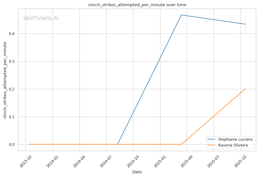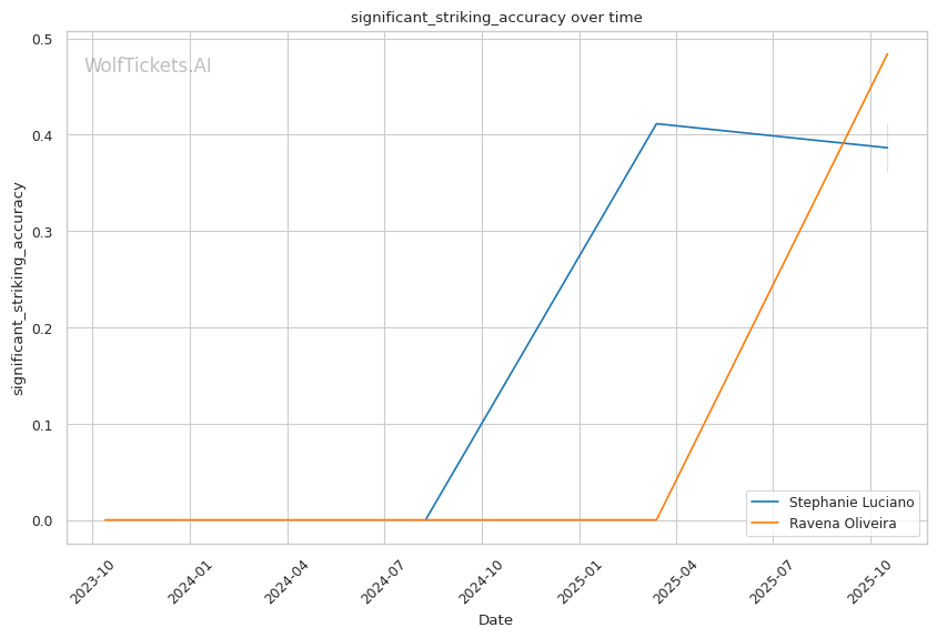 Luciano controls distance with superior striking volume and accuracy, landing 5.13 significant strikes per minute to Oliveira's 1.00. Oliveira's 27% striking defense ensures she absorbs heavy damage trying to close distance. When Oliveira rushes into clinches—her only path forward—Luciano's Muay Thai knees and elbows create damage in an area where Oliveira absorbs 0.73 strikes per minute while landing just 0.13. Oliveira's wrestling offers brief hope, but her inability to maintain top position (demonstrated against Lisboa) means Luciano scrambles back up and continues the striking assault. Luciano wins a clear decision, likely 30-27 or 29-28, by outlanding Oliveira across three rounds and stuffing or escaping takedown attempts. WolfTicketsAI's pick of Stephanie Luciano is sound despite her recent loss—Oliveira's technical deficiencies are too severe to overcome the striking differential.