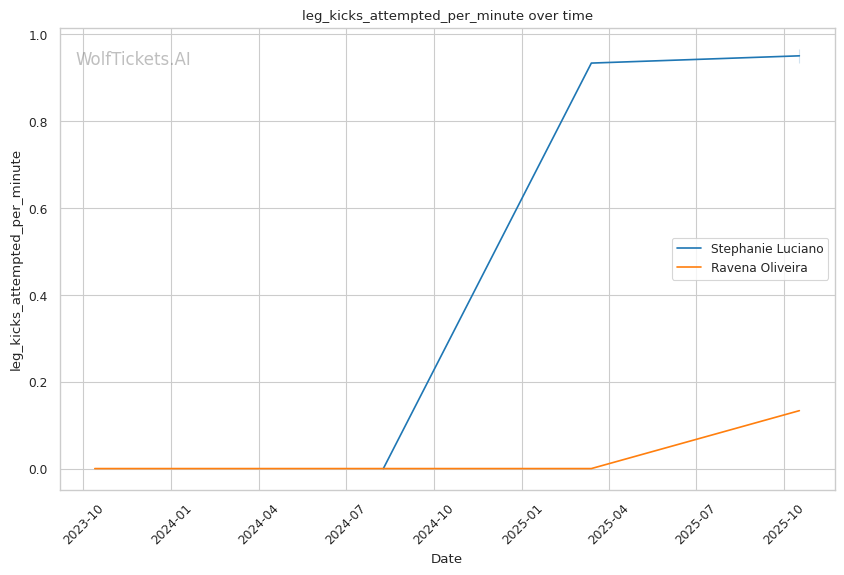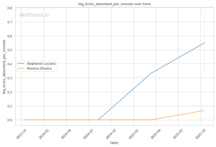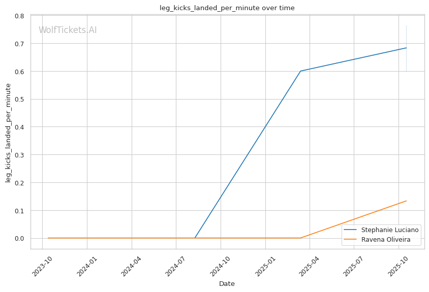 The kick-catching vulnerability that plagued Luciano against Hughes is less relevant here. Oliveira attempts just 0.13 leg kicks per minute and showed minimal kicking offense against Lisboa. She's a boxer who rushes into the clinch, not a kick-catcher who times entries off caught kicks.