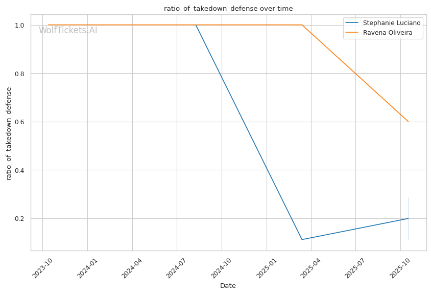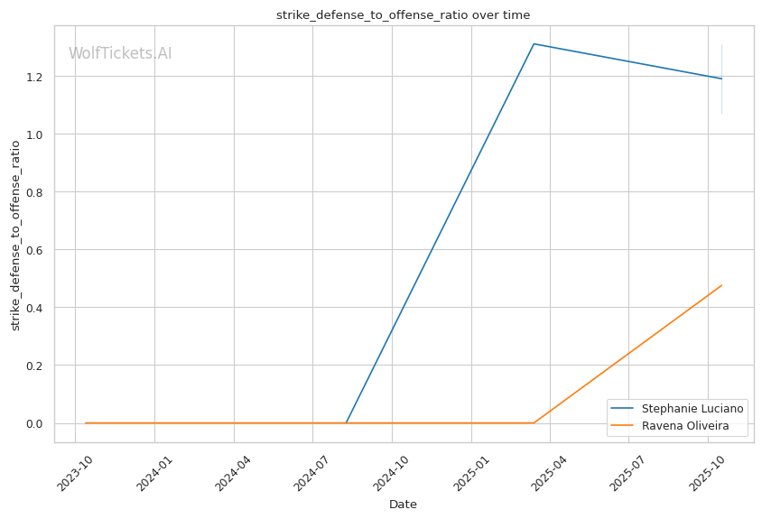 Defensive Metrics Favor Luciano: 51% striking defense and 61% significant striking defense vs Oliveira's 27% and 48%. Luciano absorbs 2.53 significant strikes per minute; Oliveira will struggle to land enough volume to threaten her.