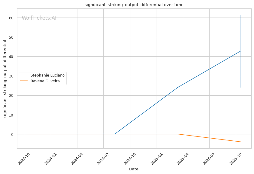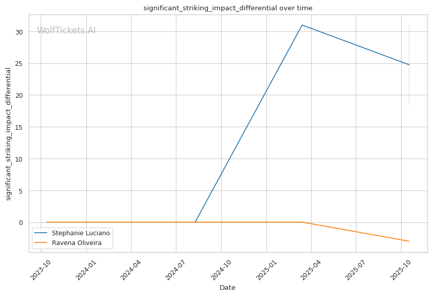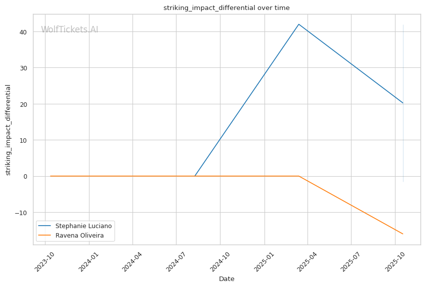 Significant Striking Impact Differential (+4) and Striking Defense Percentage (+3) highlight Luciano's superior striking metrics. Her +18.5 significant striking impact differential vs Oliveira's -3.0 creates a massive advantage in the model's eyes.