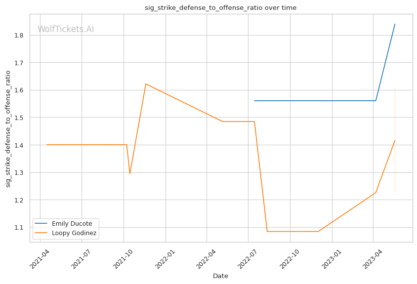 | Significant Striking Defense to Offense Ratio | 183.96% | 160.56% | 130.21% | |