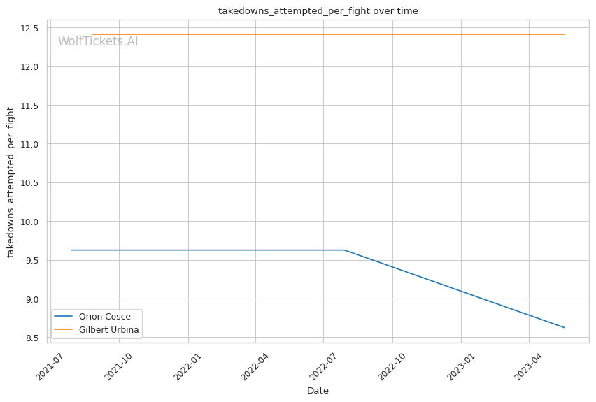 | Takedowns Attempted per Fight | 8.624 | 12.414 | 3.632 | |