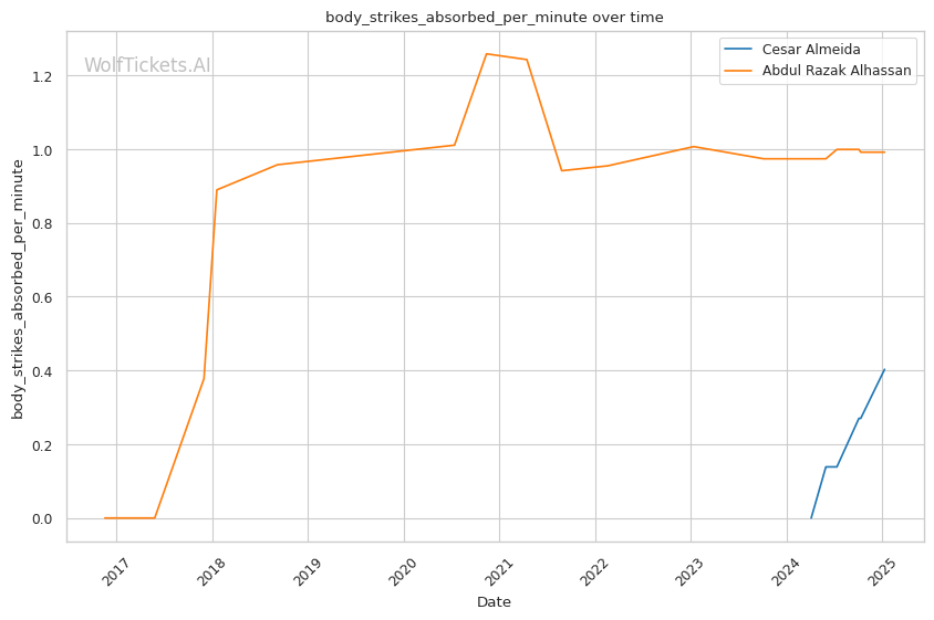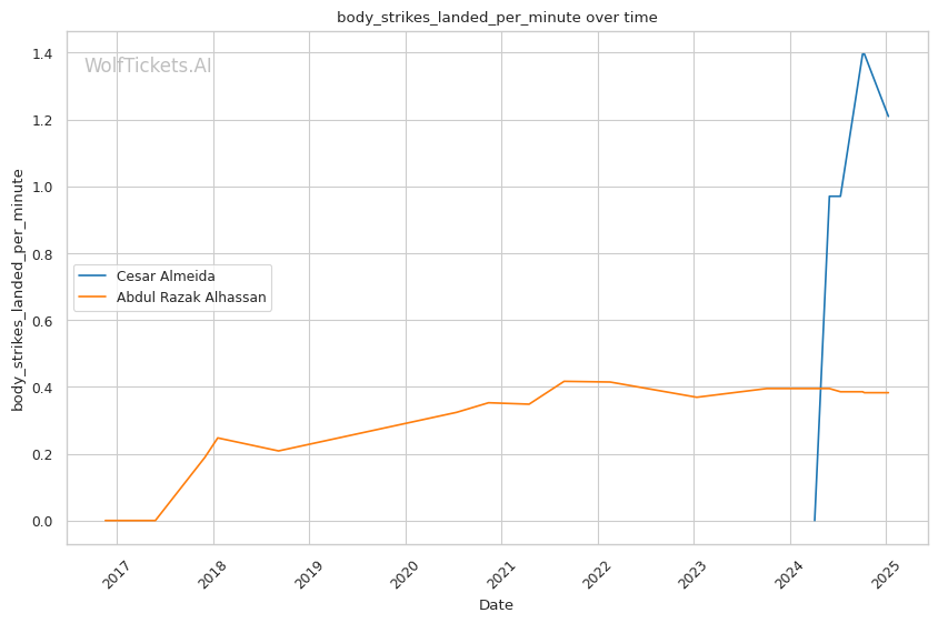 | Body Strikes Landed per Minute | 1.209 | 0.382 | 0.808 | |