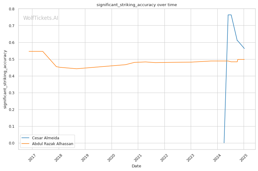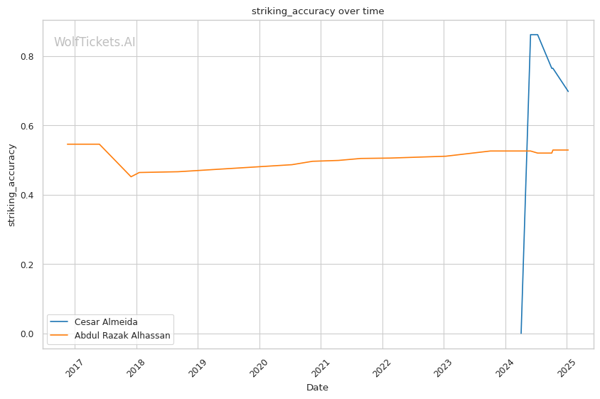 | Significant Striking Accuracy | 56.25% | 49.75% | 46.72% | |