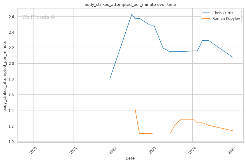| Body Strikes Attempted per Minute | 2.075 | 1.067 | 1.069 | |