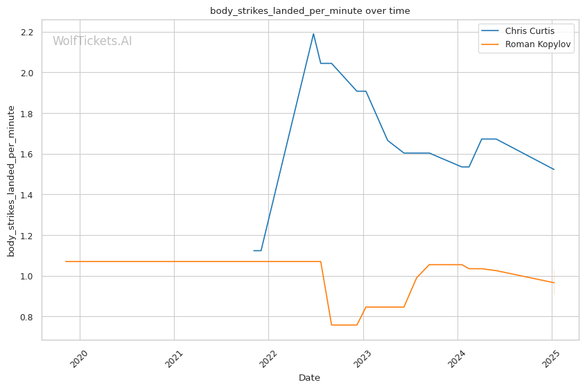 | Body Strikes Landed per Minute | 1.523 | 0.907 | 0.808 | |