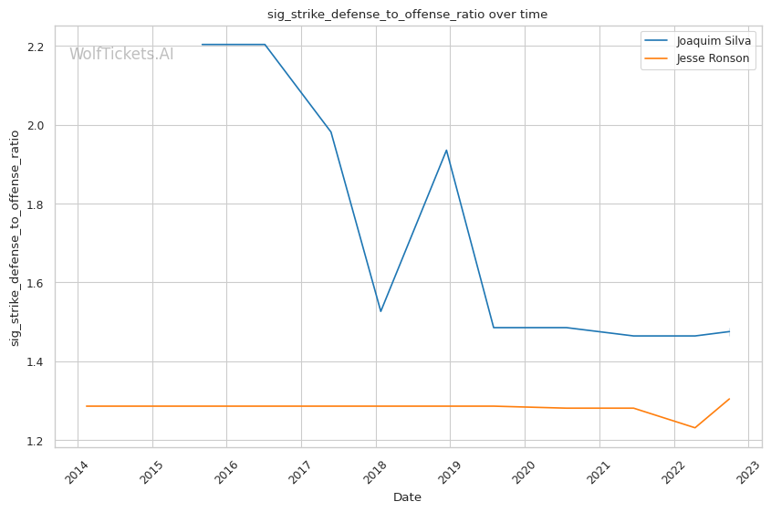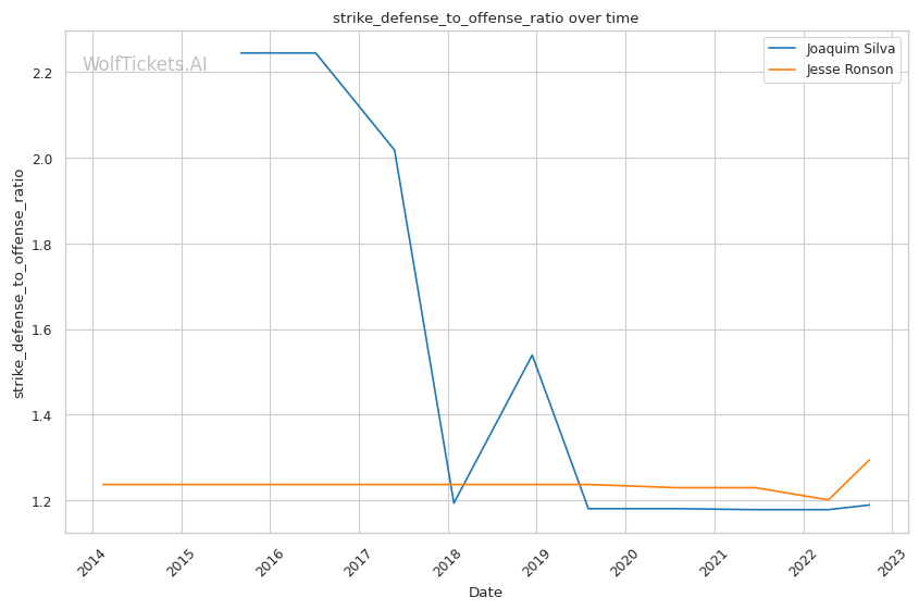 | Significant Striking Defense to Offense Ratio | 148.61% | 130.41% | 125.42% | |