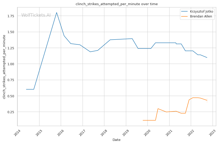 | Clinch Strikes Attempted per Minute | 1.097 | 0.393 | 0.741 | |