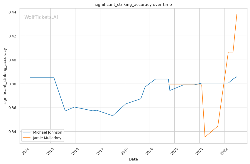 | Significant Striking Accuracy | 38.76% | 43.80% | 46.29% | |