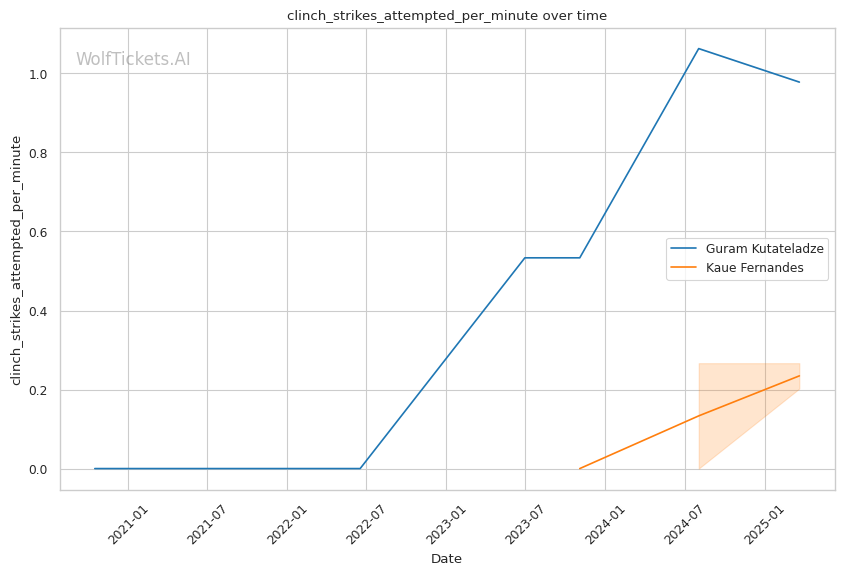 Technical striking vs. Raw power: Kutateladze brings technical variety with calculated elbow strikes, body kicks, and clinch knees, while Fernandes relies on explosive, unpredictable striking combinations.