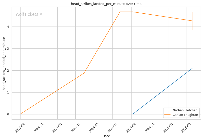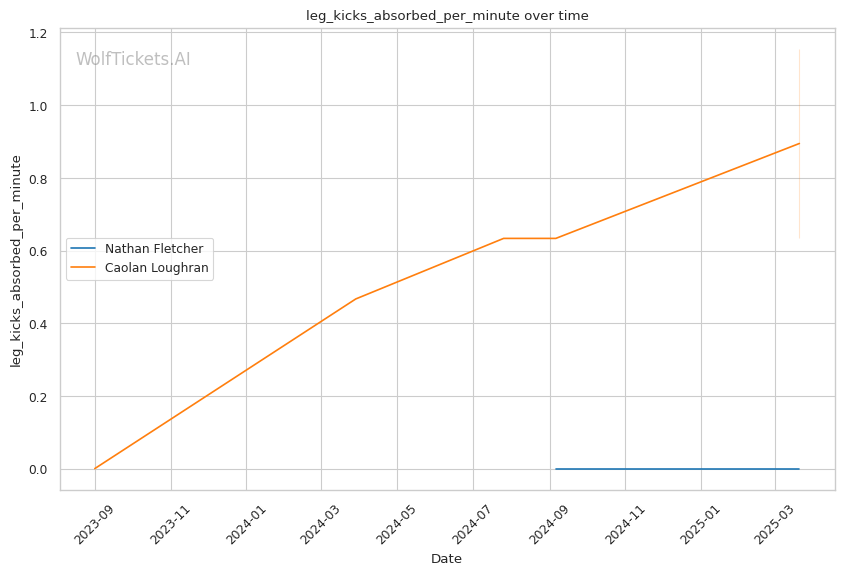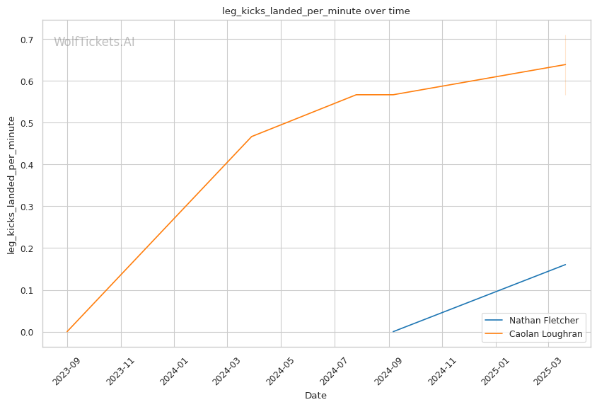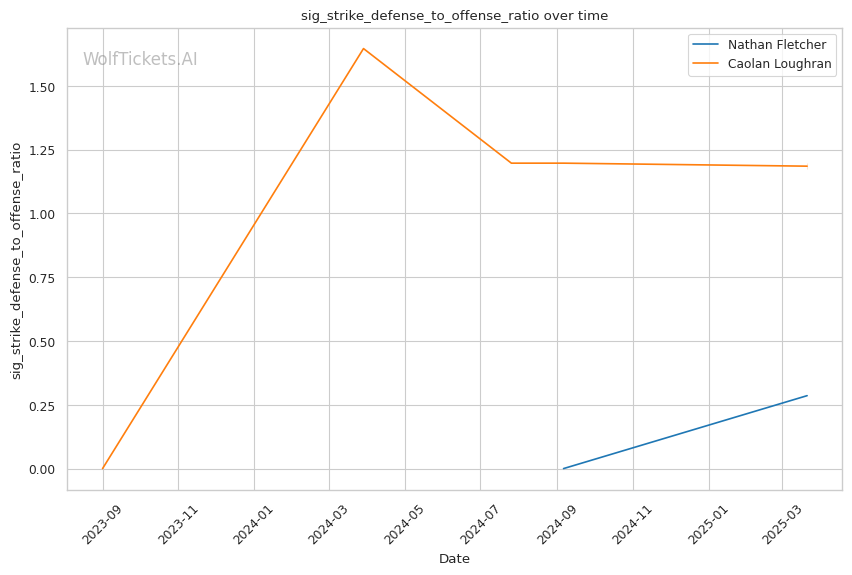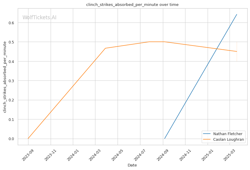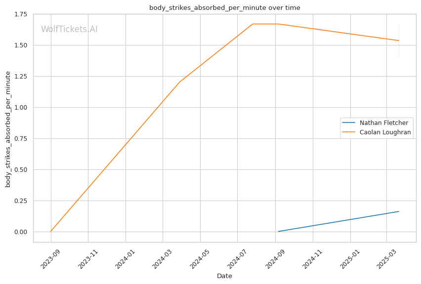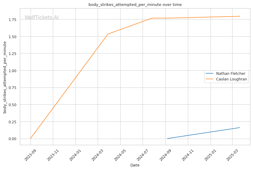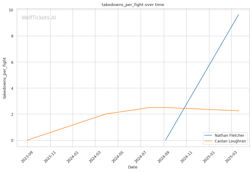 While Loughran shows decent takedown attempts (7.66 per fight), his 26% accuracy is concerning against a grappler of Fletcher's caliber. Loughran's striking volume is comparable to Fletcher's (6.35 strikes per minute), but his accuracy is significantly lower at 44.7%, making him less efficient in exchanges.