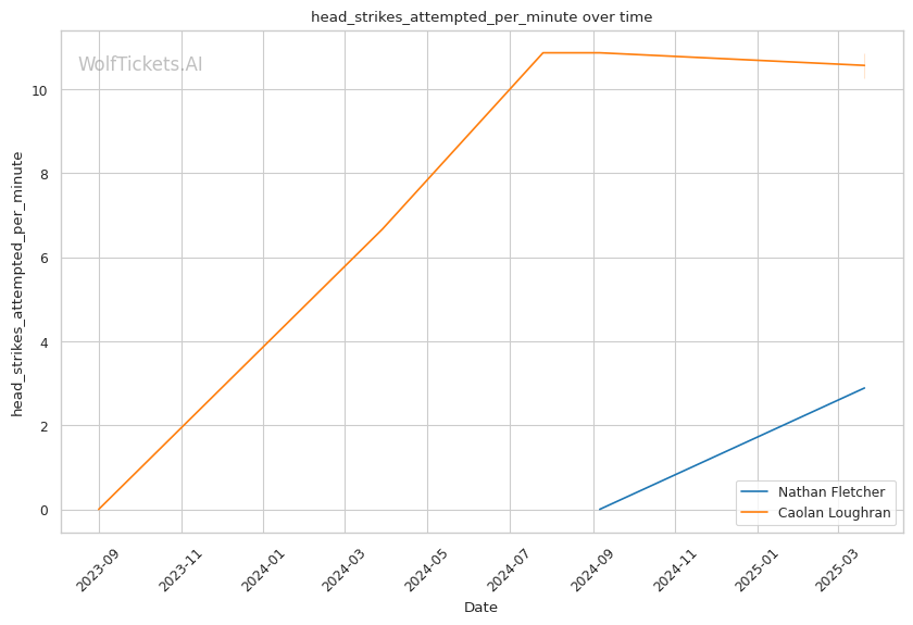 | Head Strikes Attempted per Minute | 2.888 | 10.267 | 6.201 | |