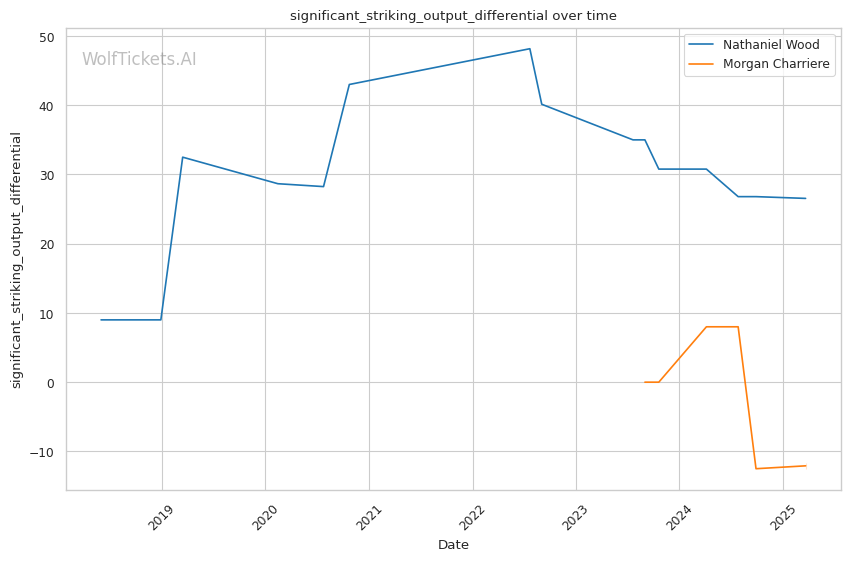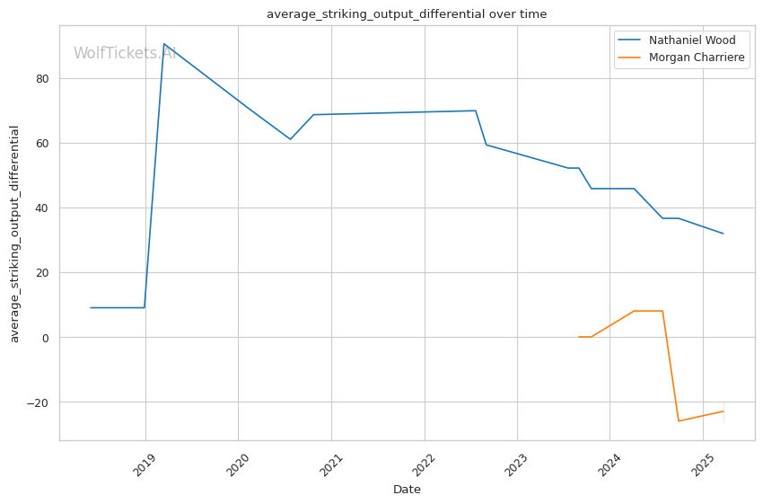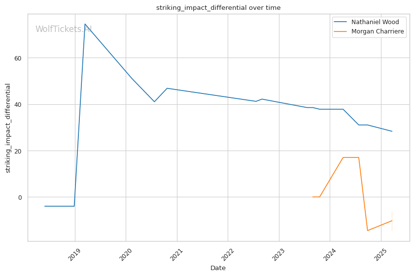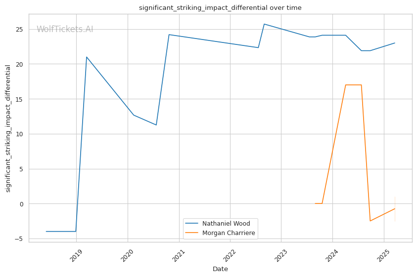 Significant striking impact differential increased the prediction score by 4.0, suggesting Charriere's power striking may be more effective than Wood's volume-based approach