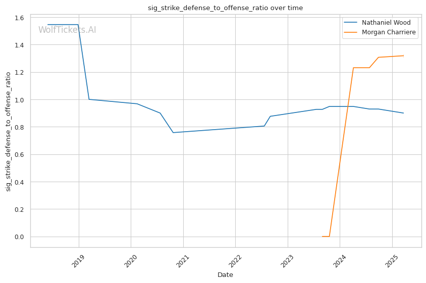 Striking defense percentage increased the prediction score by 1.0, indicating Charriere's counter-striking defense may neutralize Wood's volume