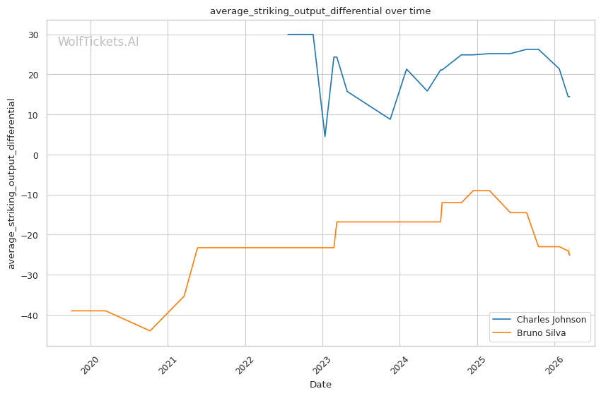 Silva's negative striking differentials are concerning. His significant striking output differential sits at -20.9, meaning he's consistently out-struck. Johnson's positive differentials (+4.77 significant striking output) suggest he should control the striking exchanges.