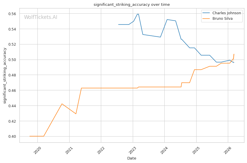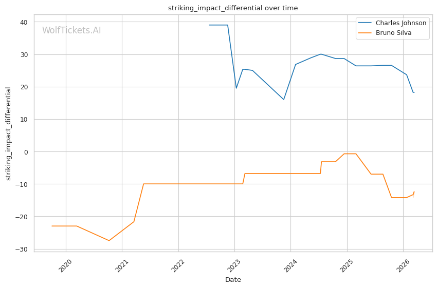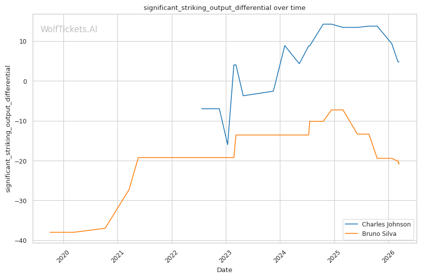 Johnson's volume and pace should also wear on Silva. Silva tends to fade as fights progress, while Johnson's cardio allows him to push the pace in later rounds. If Johnson can survive early exchanges and establish his rhythm, his output advantage (4.68 significant strikes per minute vs Silva's 3.82) should accumulate damage.